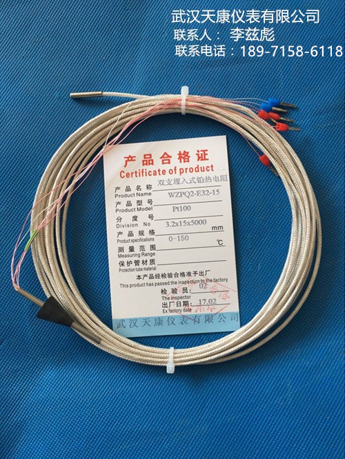 武漢天康儀表有限公司,專業(yè)生產Pt100熱電阻,插入式鉑熱電阻,雙支埋入式鉑熱電阻WZPQ2-E32-15,氣輪機用埋入式熱電阻,電機用埋置式鉑熱電阻,風機用埋入式鉑熱電阻,風機熱電阻,軸瓦熱電阻,氣機熱電阻,軸承熱電阻,SH2621熱電阻,SH2620熱電阻,SH2616熱電阻,2615熱電阻,WZP2熱電阻,鉑熱電阻廠家批發(fā)!