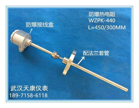 產(chǎn)品型號:WZPK-440 分度號:pt100 (可選)精度等級:A級 產(chǎn)品規(guī)格:L=450/300 mm(長度可定制) 保護(hù)管材質(zhì):316L 保護(hù)管直徑:16 mm(可定做) 連接方式:法蘭、螺紋(可定做) 產(chǎn)品廠家:武漢天康儀表 咨詢熱線:189-7158-6118