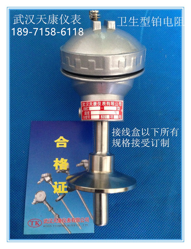 衛(wèi)生型鉑電阻 型號(hào): TKWZPK-330W 品牌:武漢天康 分度號(hào):Pt100 連接方式:衛(wèi)生法蘭(可選) 規(guī)格:L=100/50(可選) 保護(hù)管材質(zhì):304材質(zhì)(可選) 溫度范圍:-200-450℃ (可選)