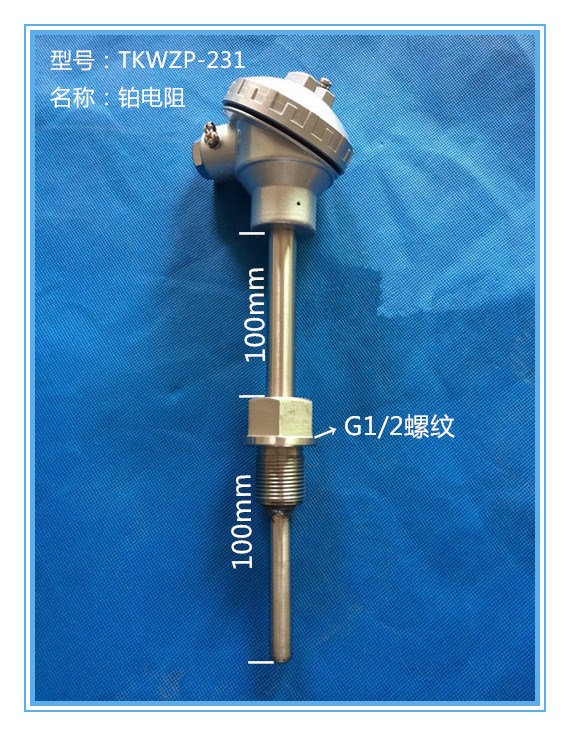 采用感溫元件 優(yōu)質(zhì)接線盒,優(yōu)質(zhì)不銹鋼保護(hù)管 型號(hào):TKWZP-231 分度號(hào):PT100 保護(hù)管長(zhǎng)度:200/100 保護(hù)管直徑:12mm 安裝螺紋:G1/2、G3/4 測(cè)溫范圍:-200-+450℃