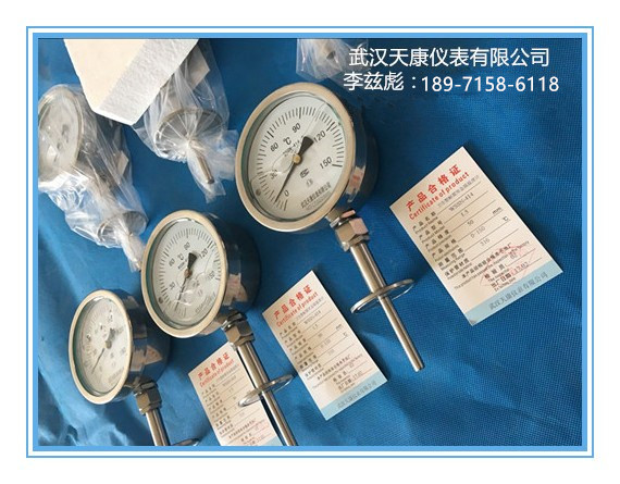 ②徑向型雙金屬溫度計(jì):指針盤與保護(hù)管平行連接。