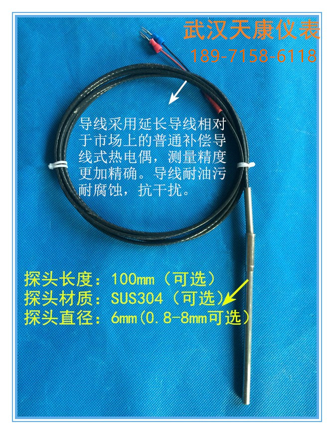 型號(hào):WRNK-196 分度號(hào):K 連接方式:直插式 規(guī)格:6*100*2000mm 量程:0-1300℃ 品牌: 武漢天康儀表(可根據(jù)實(shí)際需求定做,訂貨請(qǐng)注明:保護(hù)管直徑,插深,延長(zhǎng)導(dǎo)線長(zhǎng)度,可選配補(bǔ)償導(dǎo)線)