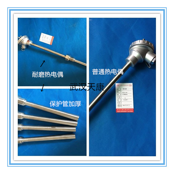 武漢天康儀表耐磨熱電偶主要用于煤粉爐,球磨機(jī),水泥廠等工業(yè)現(xiàn)場(chǎng),采用鎧裝或高溫鎧裝芯體,配以不同材質(zhì)及規(guī)格的耐磨套管,耐磨損、耐震動(dòng)、抗熱震性能好,在各種磨損程度極高的惡劣場(chǎng)合中產(chǎn)品的使用壽命可達(dá)普通產(chǎn)品的幾倍之高,大大提高了生產(chǎn)效率, 降低成本消耗。 采用特種耐熱和耐磨合金材料作為測(cè)量外保護(hù)管兼耐磨頭,內(nèi)裝鎧裝芯體,既能具有較高的對(duì)粉煤灰顆 粒沖刷的耐蝕性能,能長(zhǎng)期在0~1400℃之間進(jìn)行溫度測(cè)量,是冶金行業(yè)運(yùn)用于高溫、耐磨環(huán)境中十分理想的溫度傳感器。